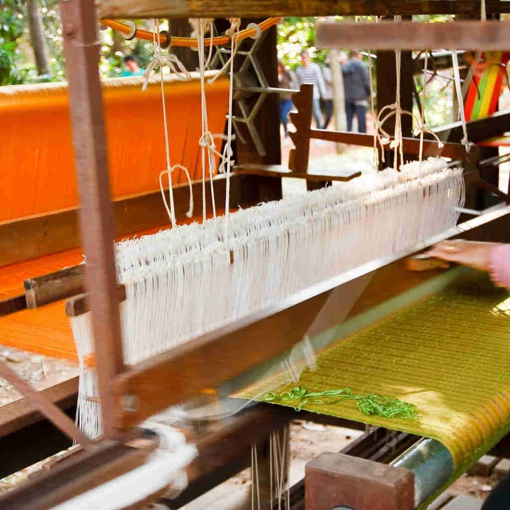 Our main production method is hand loom fabric weaving where cotton yarn is first hand-dyed and then woven into premium quality fabric using a traditional wooden loom.