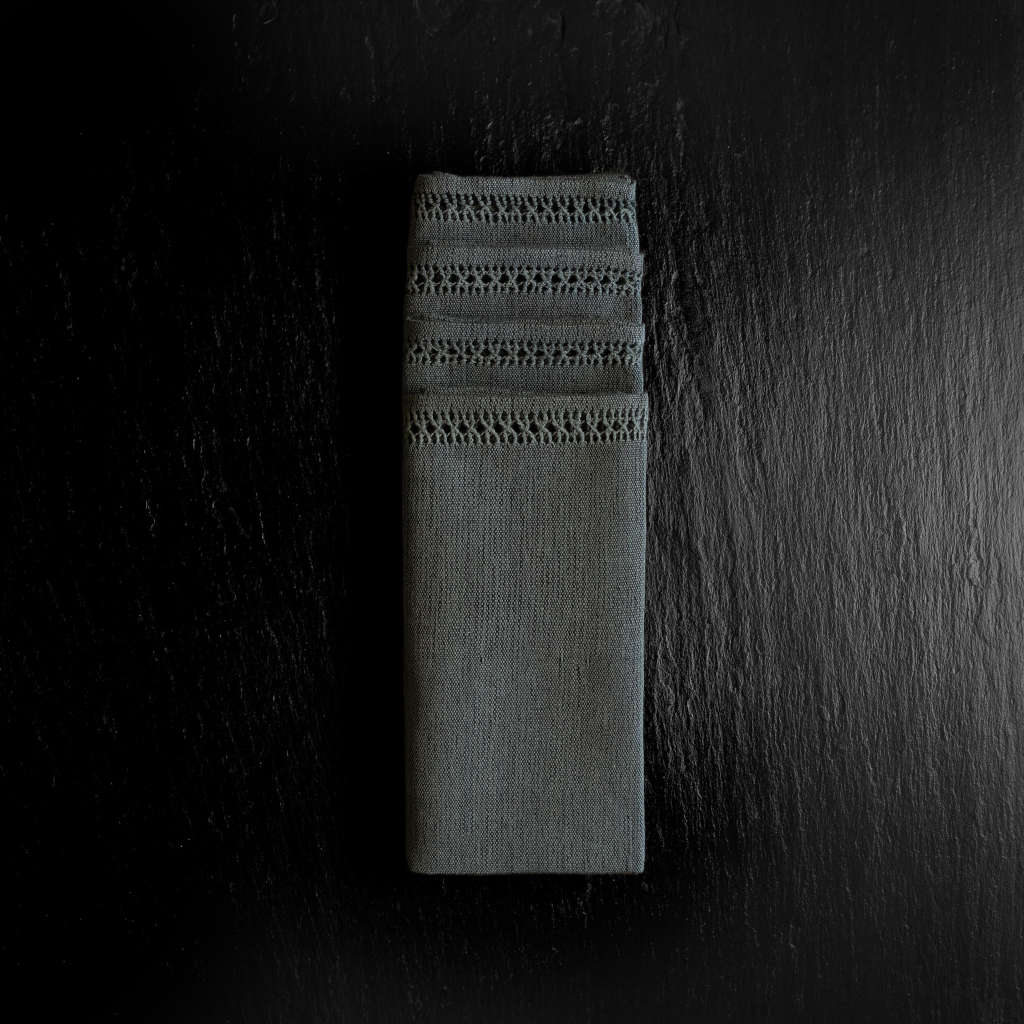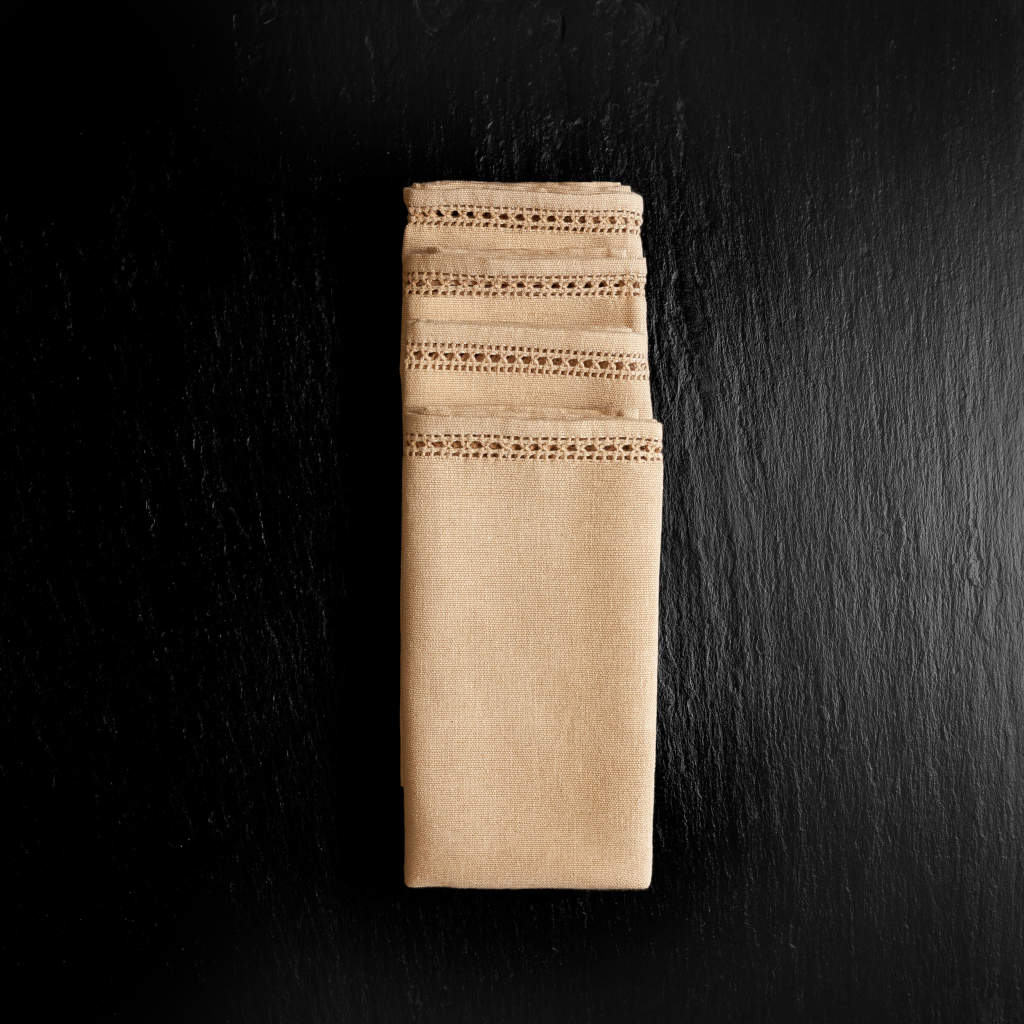 Fully machine washable and made in small batches using natural materials and dyes, each cloth napkin is finished with an Italian hemstitch to ensure durability.
