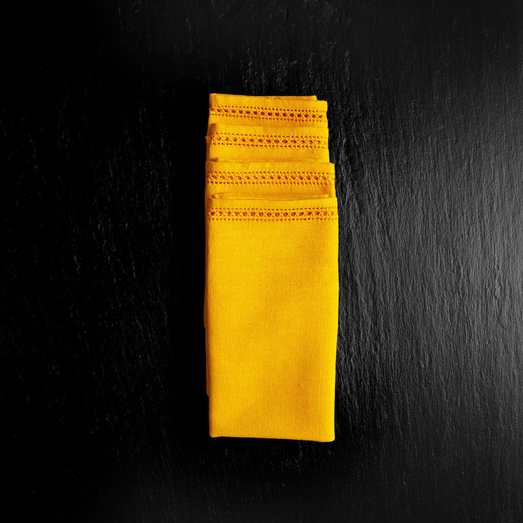 Tip: Some of our customers like to purchase multiple sets of our napkins to mix and match the colors. One of the most popular color combinations is our dark ‘Cape Storm’ and bright ‘honeycomb’ for a high contrast look.