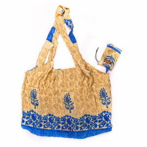 Made by upcycling used sarees. A sustainable alternative to plastic bags.